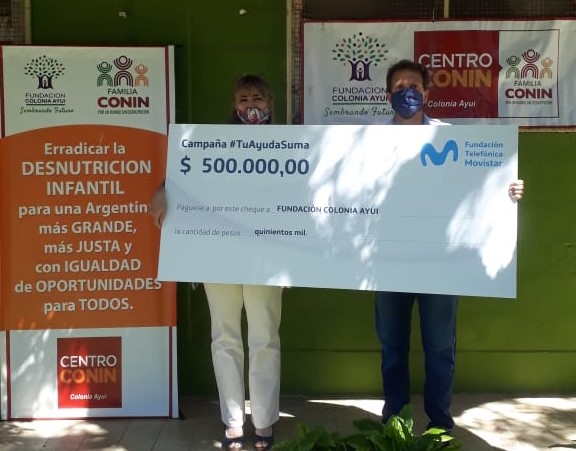 La donación fue realizada a la Fundación Colonia Ayuí Centro Conin, Colonia Ayuí e Itinerante en Concordia. En un encuentro participaron Federico Paccazochi, ejecutivo de Cuentas de Telefónica Movistar, y Silvia Durán, coordinadora General de la Fundación Colonia Ayuí Centro Conin Colonia Ayuí e Itinerante Concordia. Paccazochi consideró que fue «una gran experiencia y un placer poder colaborar junto con los voluntarios y las familias, en esta acción tan noble que llegara a más de 430 familias».